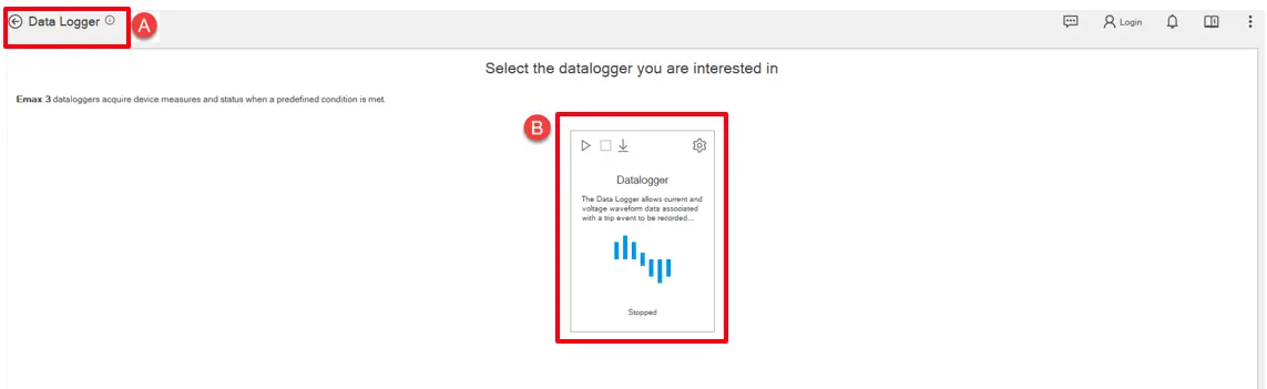 مع اتصال الجهاز والتواصل مع Ekip Connect، انقر على أدوات > مسجل البيانات.