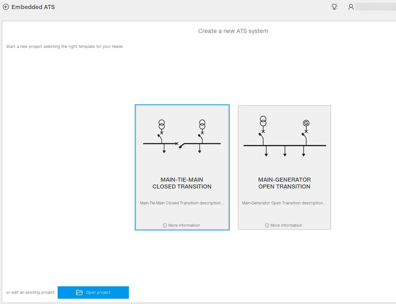 For at starte et nyt projekt, vælg Main-tie-main lukket overgang eller klik på Åbn projekt for at åbne et tidligere gemt projekt
