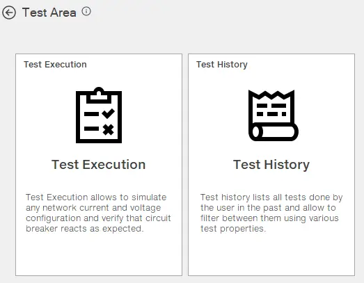 ट्रिप टेस्ट: ओपनिंग सोलनॉइड के संचालन की जाँच करता है। विशेष रूप से, यह सत्यापित करता है कि, ट्रिप कमांड के बाद, सर्किट ब्रेकर बंद से खुली अवस्था में स्विच हो जाता है (परीक्षण क्षेत्र: ट्रिप टेस्ट)।