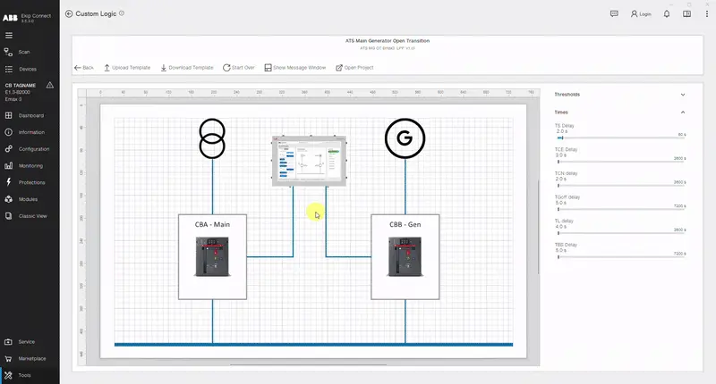 ATSテンプレートは、カスタムロジックツールを使ってデバイスにプログラムされる高性能エネルギー自動化ソリューションで、設置・設定が容易です。その目的は、事前設定されたセットアップを自動的にアップロードし、選択したATSテンプレートの正しい動作を保証するために必要なすべての設定を適用する 、すぐに使えるロジック を提供することです。カスタムロジックツール内では、2つのテンプレートから選択でき、それぞれ2つの異なる設定モードを提供します。