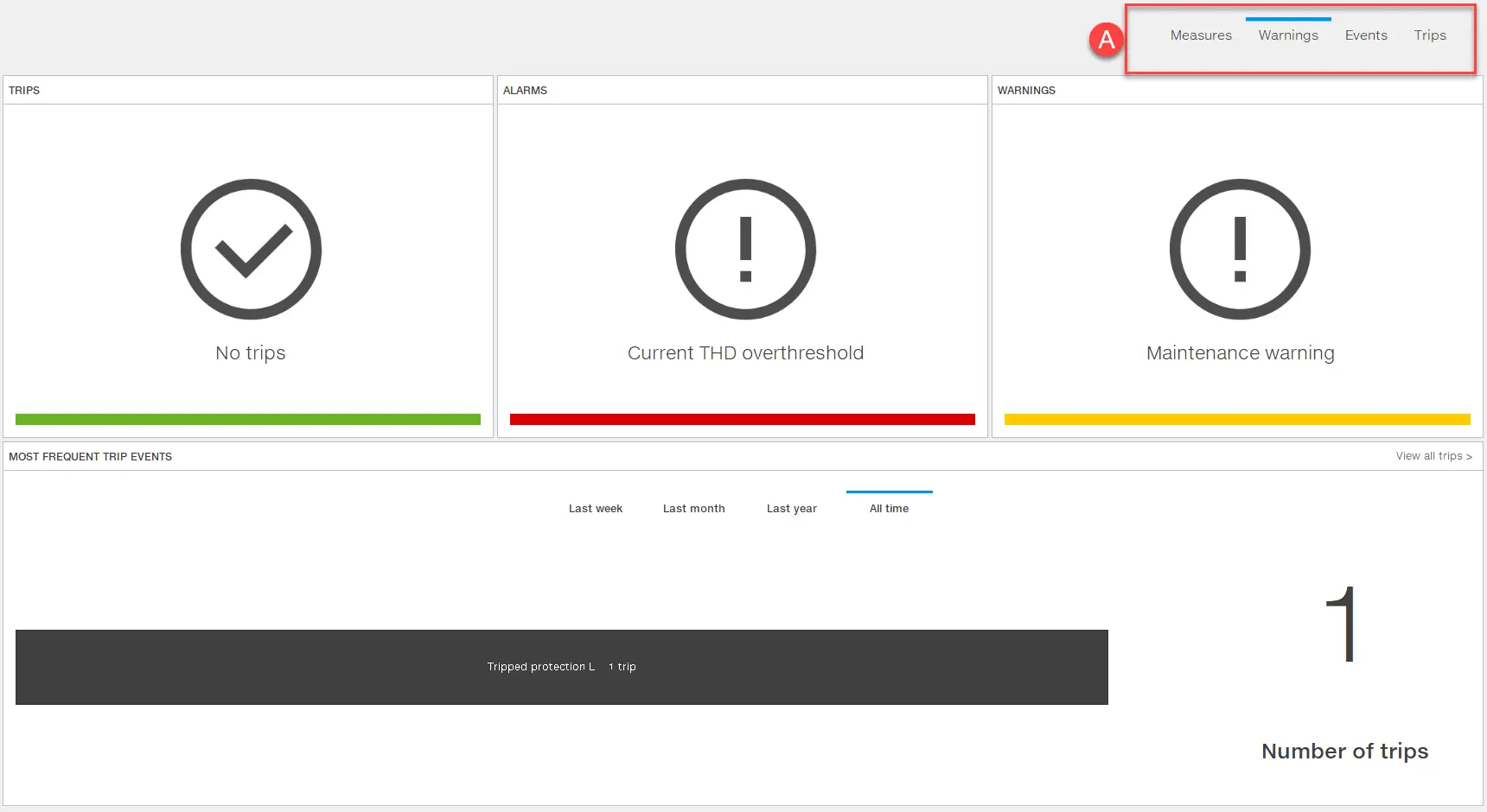 Weergave van reizen op basis van type bescherming die de reis veroorzaakte gedurende een bepaalde periode (vorige week, vorige maand, vorig jaar, allemaal) Aantal ritten: totaal aantal ritten in de geselecteerde periode Toont alle reizen: link naar pagina Reis (Paginainterventies)