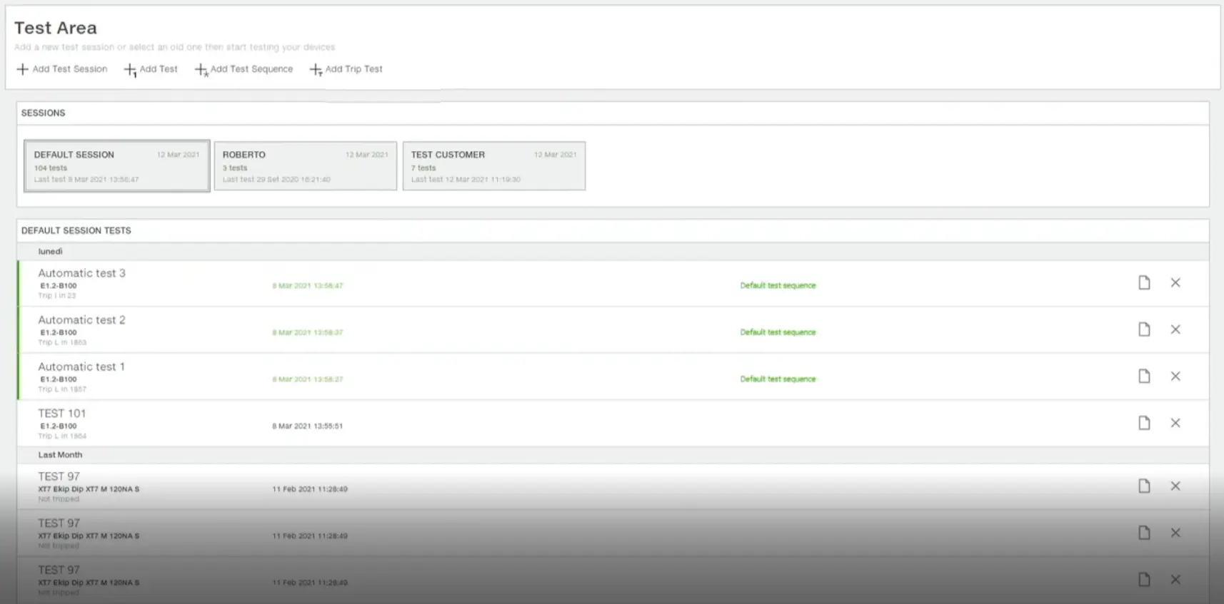 Aby rozpocząć sesję, wybierz przycisk sesji: przeprowadzone testy są zapisywane w wybranej sesji.