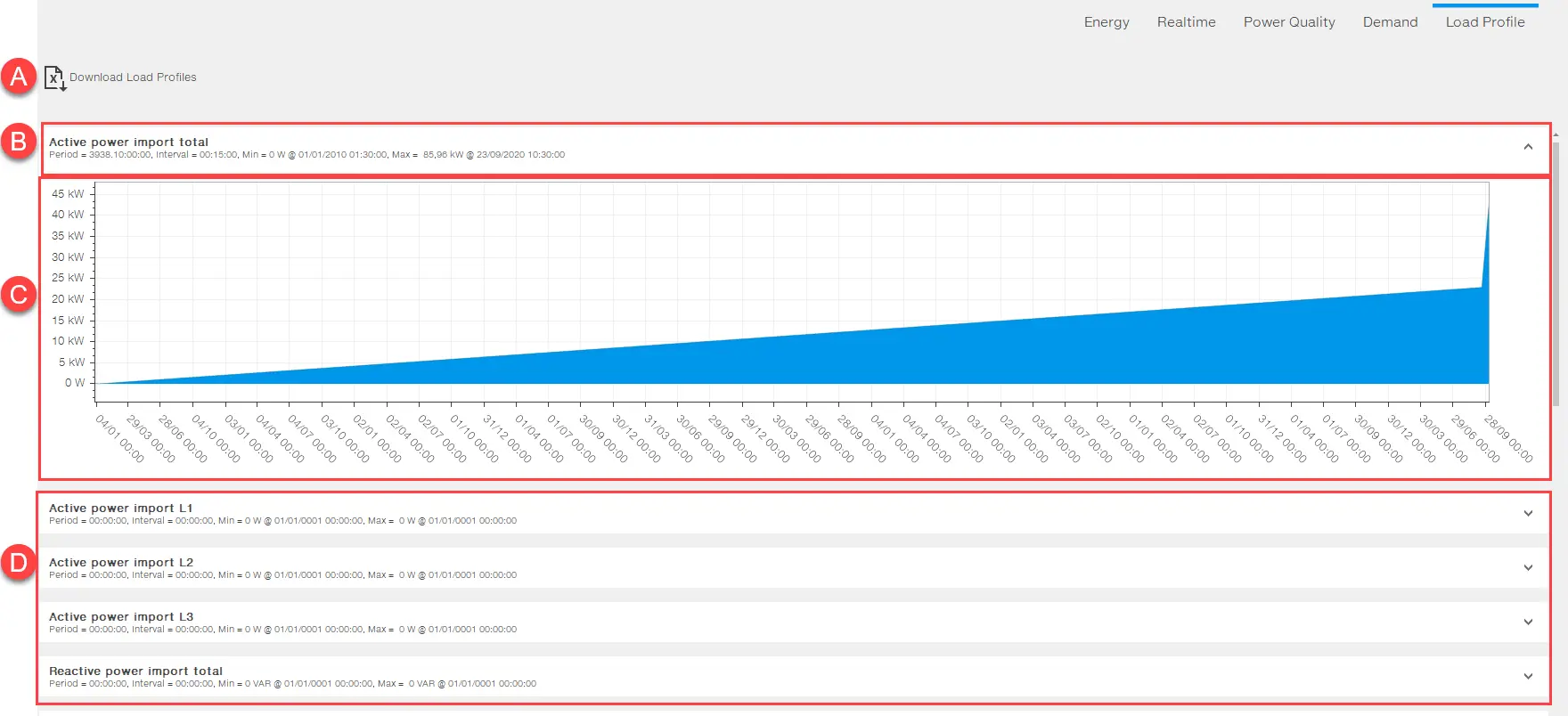 | A | İçe aktarılan ve dışa aktarılan enerji değerlerini göstermek için menü |