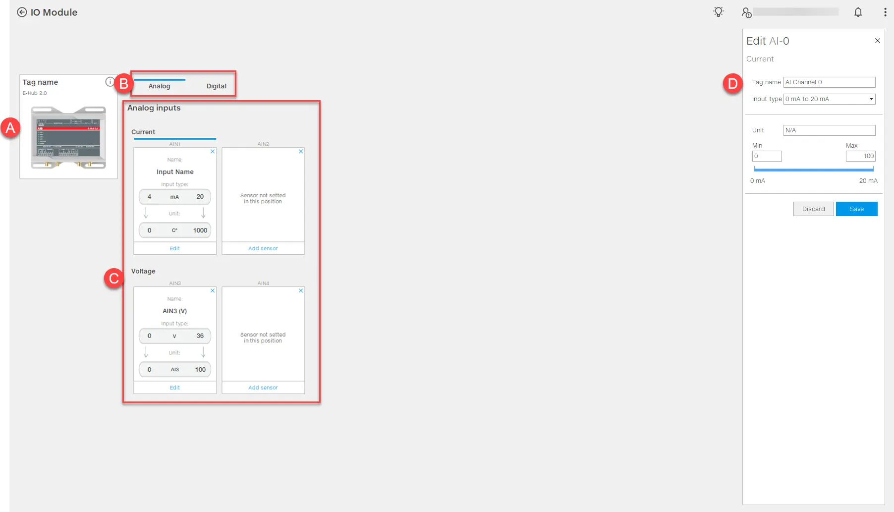- Додайте сенсор: відображає область [D ] для налаштування входу та відповідного датчика.
