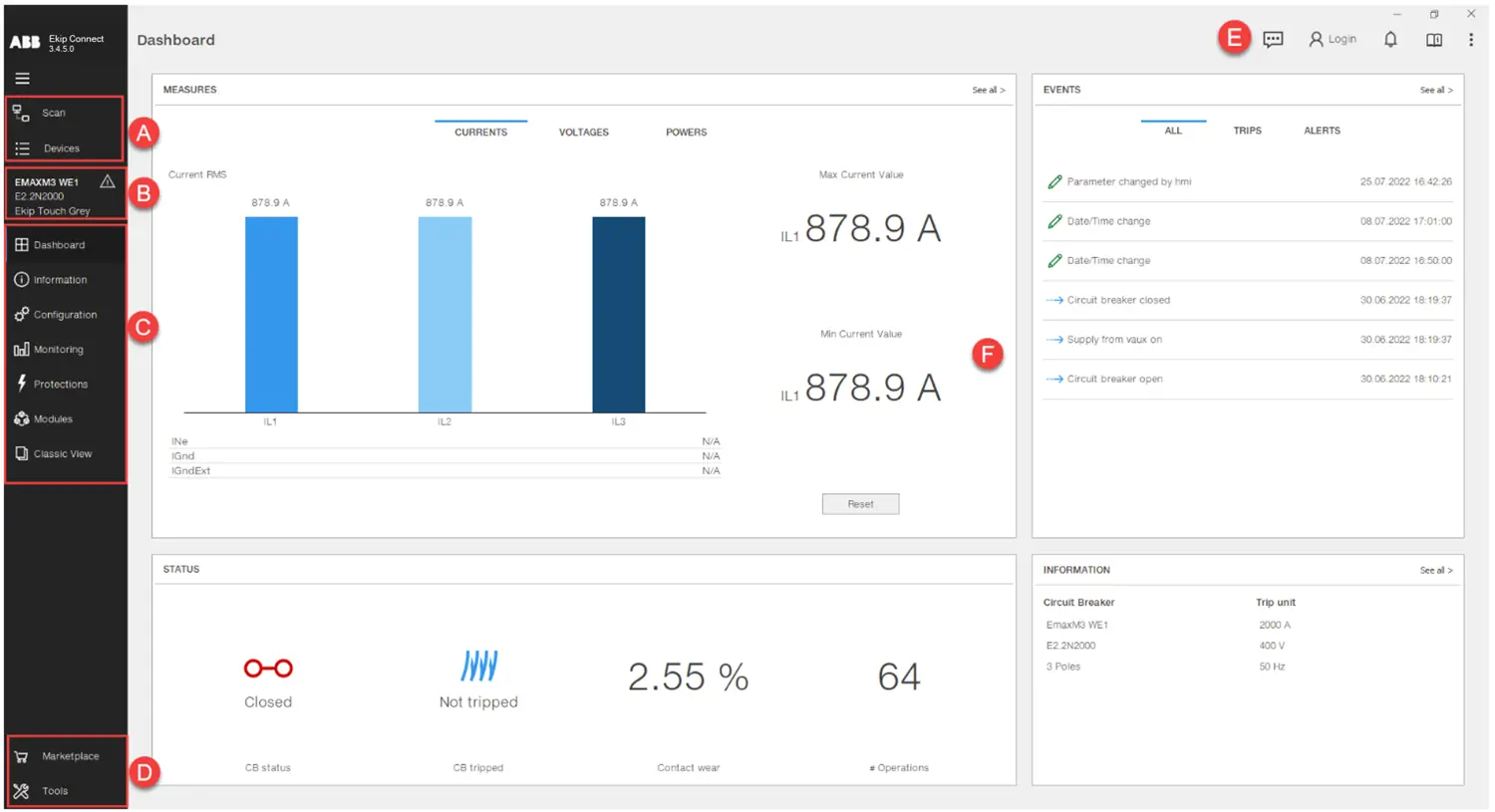 Ekip Connect, tùy thuộc vào thiết bị, có thể thực hiện các chức năng chính sau:
